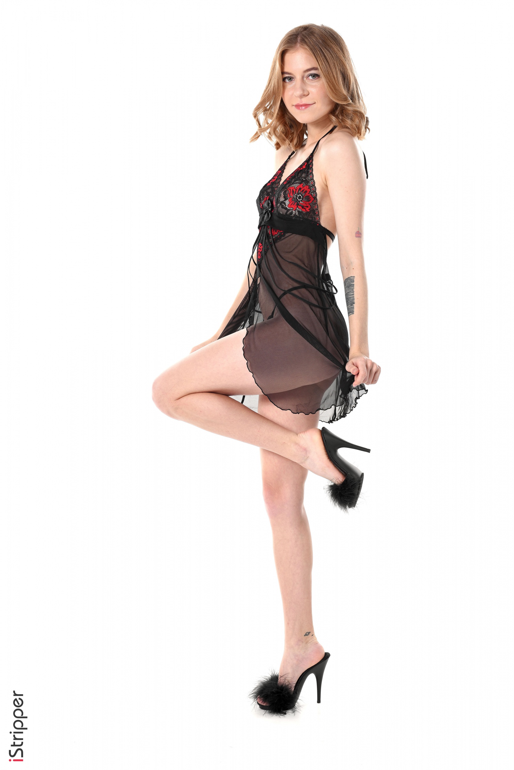 Tags: babydoll, high heels, lingerie, naked feet, shaved, tattoos